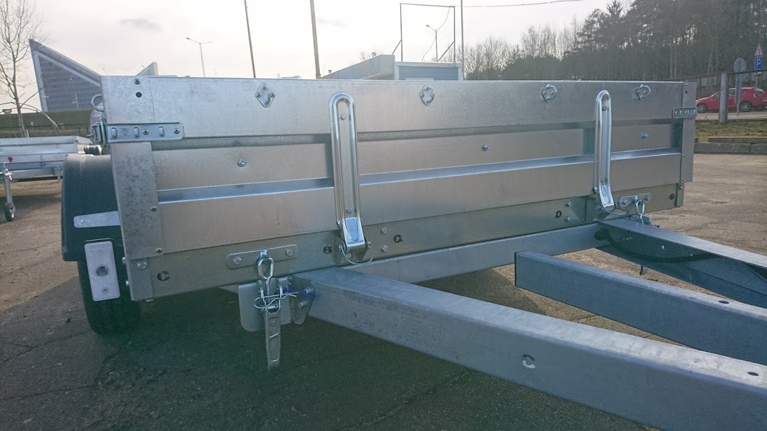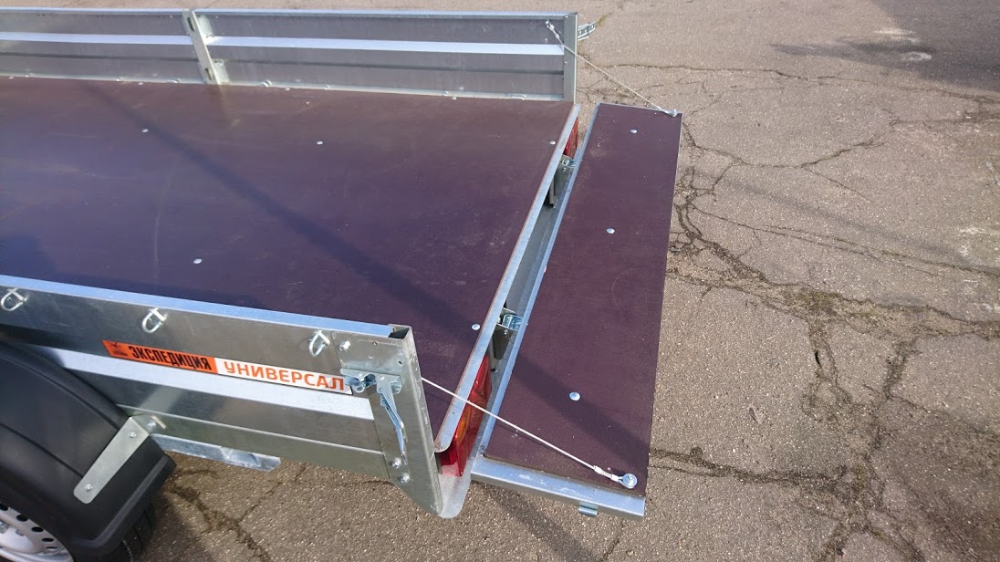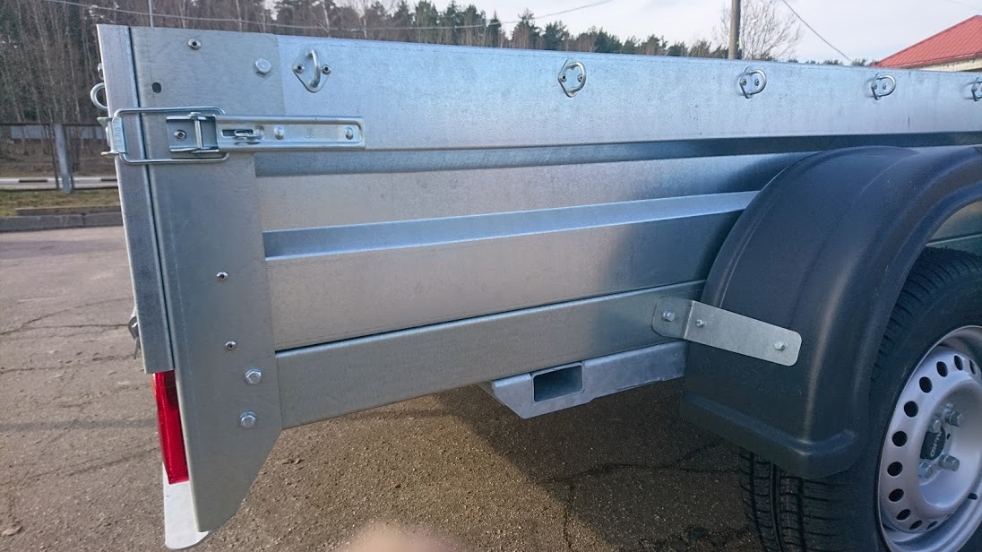 Борта толщиной 1.5 мм имеют жесткость благодаря специальному гнутому профилю. Стойки боковых бортов из 3мм стали. Передний и задний откидные борта быстросъемные, усилены фанерой.