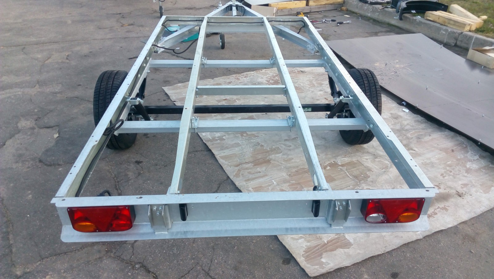 При создании прицепов применена инновационная конструкция, сочетающая лучшие характеристики цельносварных и болтосборных прицепов. Болтосборная рама (толщина 3 мм) располагается на жестком сварном подрамнике. Образно говоря, получился грузовик или рамный внедорожник.