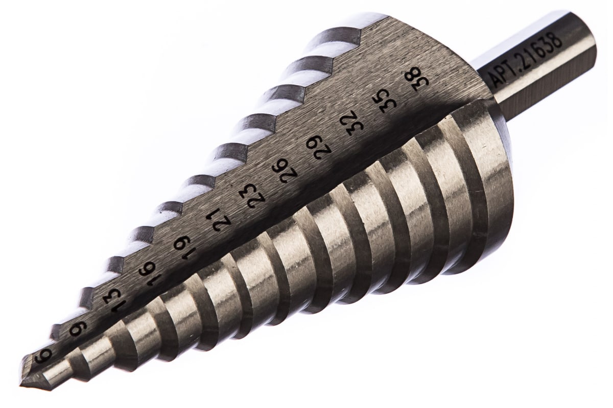При выборе такого ступенчатого сверла обязательно учитывайте диаметр отверстия, которое собираетесь делать, высоту ступеньки, так как она является показателем толщины материала, который вы будете сверлить, а также материал исполнения. Качественные профессиональные сверла изготавливают из быстрорежущей стали с добавлением кобальта, бывают без покрытия, а а так же с покрытыем нитридом титана. Если говорить простыми словами, сверла с таким покрытием имеют меньшую шероховатость. За счет этого снижается трение, уменьшается биение и скорость подачи можно увеличить до 40%.