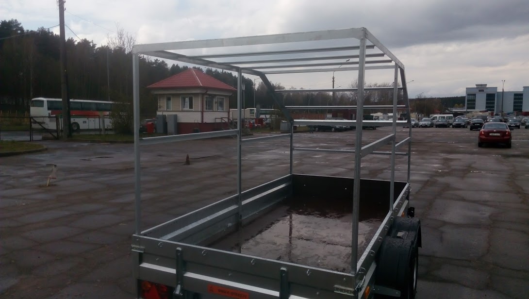 Каркас тента выполнен из оцинкованного металла толщиной 2 мм, разборный. Крепеж тента к бортам осуществляется на скобы (ЕВРО тент) с помощью троса.
